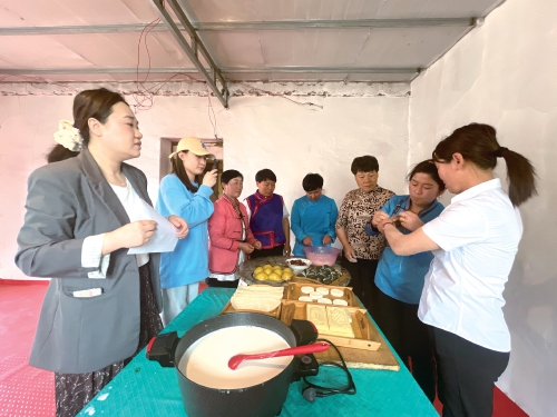 2025年端午節(jié)前,巴仁哲里木鎮(zhèn)宣傳委員、宣傳干事在寶日根嘎查拍攝蒙古族和漢族群眾一起包粽子、制作奶皮子的畫面?!∞r(nóng)民日報·中國農(nóng)網(wǎng)記者 劉杰 攝