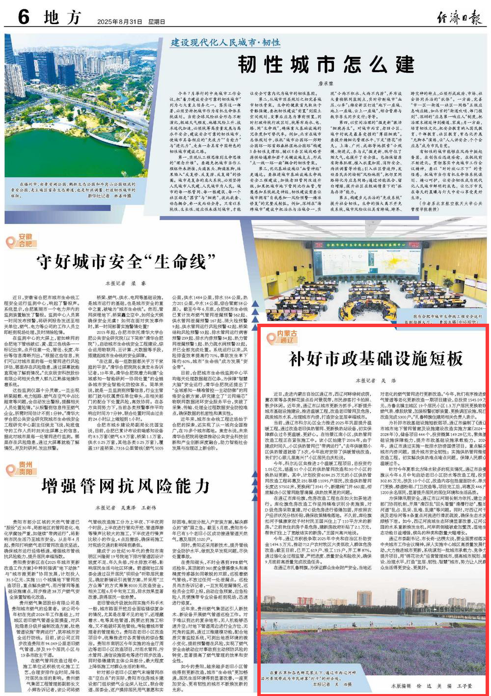 2025年8月31日,《經(jīng)濟(jì)日報》第6版刊發(fā)題為《補(bǔ)好市政基礎(chǔ)設(shè)施短板》的文章,報道了近年來,通遼市以城市更新為抓手,不斷提升城市基礎(chǔ)設(shè)施建設(shè),推進(jìn)溫暖工程,改造老舊管網(wǎng)及危房,疏浚城市水系,治理城市內(nèi)澇,打造安全宜居幸福城市。