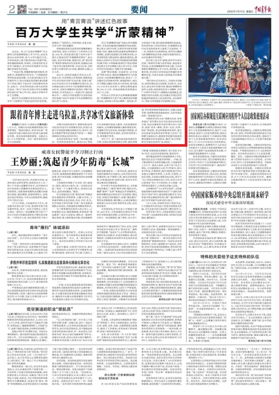 2026年1月11日,《中國(guó)青年報(bào)》第2版刊發(fā)題為《跟著青年博主走進(jìn)烏拉蓋,共享冰雪文旅新體驗(yàn)》的文章,報(bào)道了1月10日,內(nèi)蒙古自治區(qū)錫林郭勒盟烏拉蓋管理區(qū)“歌游內(nèi)蒙古 冰雪烏拉蓋”第三屆冰雪文旅主題活動(dòng)在烏拉蓋九曲灣景區(qū)開幕。來(lái)自全國(guó)各地的游客、文旅達(dá)人約1萬(wàn)人齊聚雪原,開啟一場(chǎng)草原特色的冬日文旅盛宴。