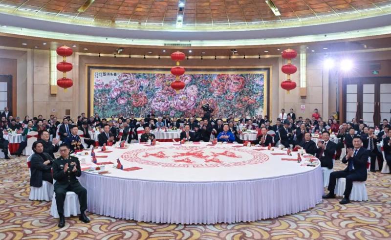 新城賓館國(guó)宴廳內(nèi)張燈結(jié)彩,與會(huì)各界人士互致問(wèn)候、祝福新春,現(xiàn)場(chǎng)洋溢著歡樂(lè)喜慶的節(jié)日氣氛。