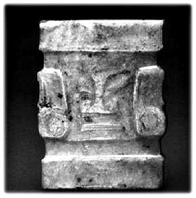 這里我再提供一張照片給大家參考,這是之前提到的湖南孫家崗,那里出土的玉人(圖2)。它跟我們介紹的石家河的玉人的造型幾乎是一樣的,也有冠和一對(duì)鳥(niǎo)(一只斷裂),只不過(guò)它的造型更加夸張,眼睛更加凸顯,獠牙上下都有,它表達(dá)的意思也是一樣的。這個(gè)玉人出現(xiàn)的年代大約是4000年前,推測(cè)那時(shí)已經(jīng)進(jìn)入夏的紀(jì)年。