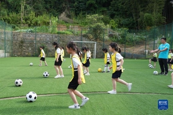 浙江紹興諸暨市浬浦鎮(zhèn)中心學校依托村鎮(zhèn)足球場、中醫(yī)藥文化體驗中心等,開展足球、木球、五禽戲等特色項目,為體育教育注入活力。
