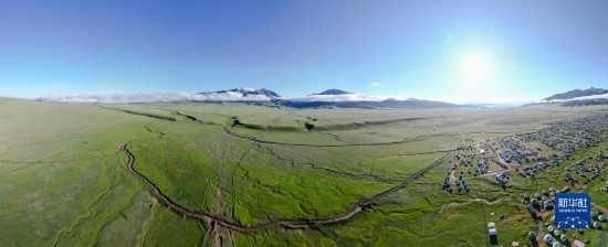 巴音布魯克草原景色(7月7日攝,無人機(jī)全景照片)。