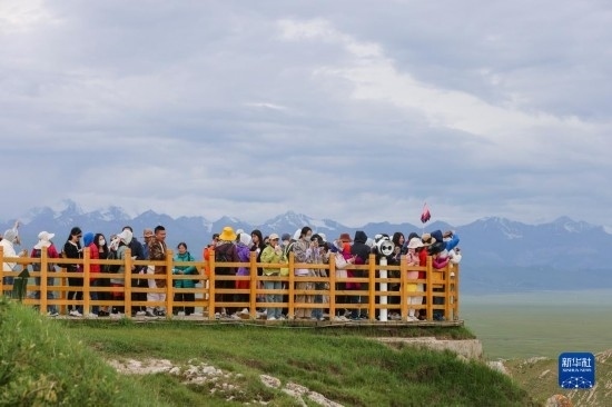 游客在巴音布魯克天鵝湖景區(qū)參觀(7月6日攝)。