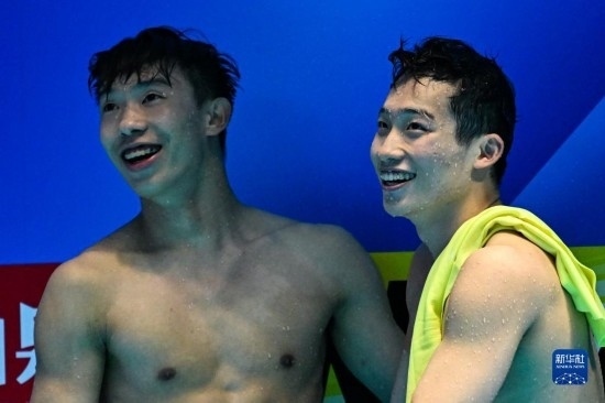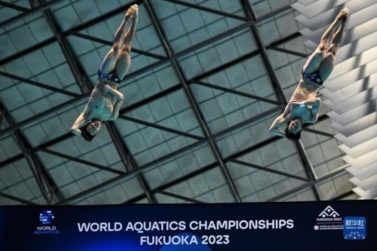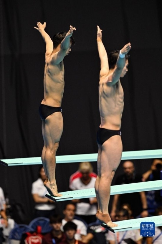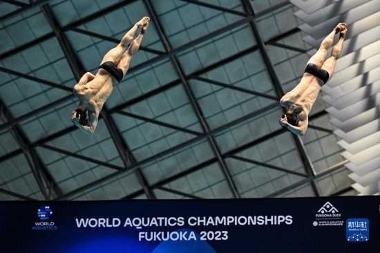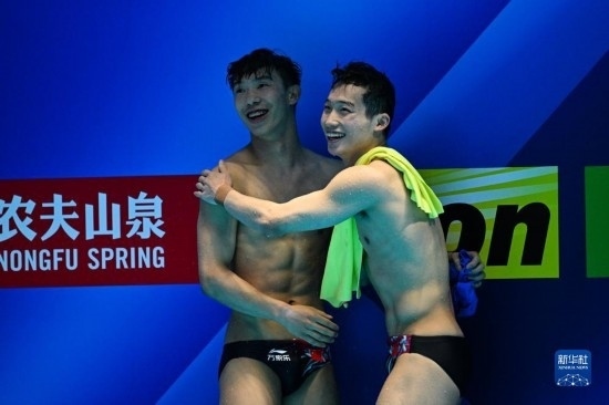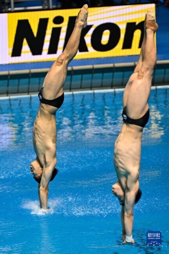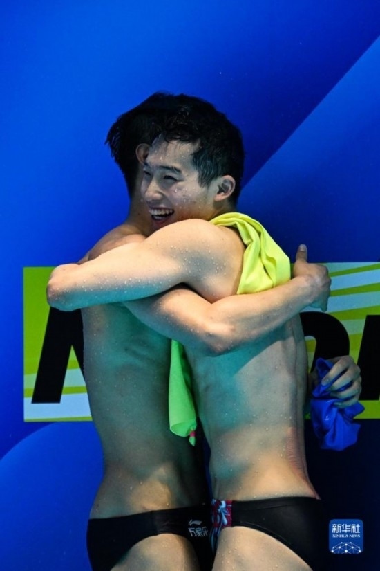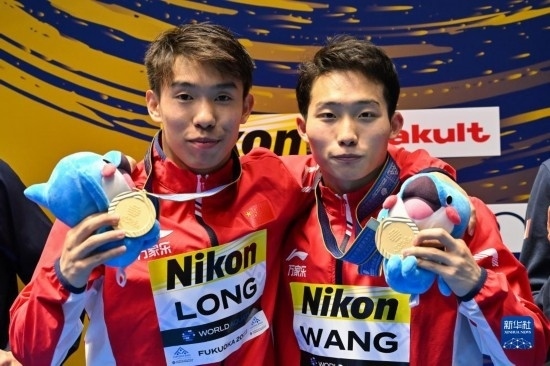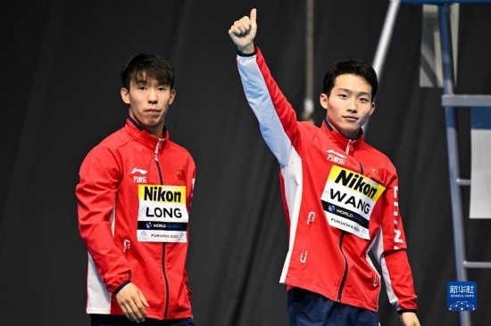 當(dāng)日,在2023年福岡世界游泳錦標(biāo)賽跳水男子雙人3米板決賽中,中國組合龍道一/王宗源以456.33分的總成績奪得冠軍。