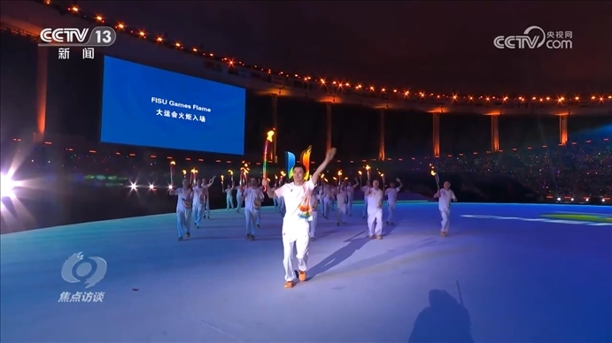 成都第31屆世界大學(xué)生夏季運動會開幕式總導(dǎo)演陳維亞:“我們在火炬手選擇上費盡心機。既然說陽光燦爛的開幕式,青年人和太陽之間有必然的聯(lián)系,那么誰離太陽最近呢?自然想到我們四川成都籍的宇航員葉光富?!?/p>