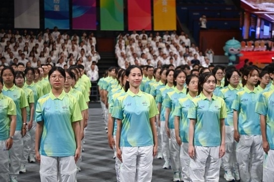 8月24日,杭州亞運(yùn)會(huì)、亞殘運(yùn)會(huì)賽會(huì)志愿者出征儀式在浙江大學(xué)紫金港校區(qū)體育館舉行。1800名賽會(huì)志愿者代表在儀式現(xiàn)場(chǎng)向全世界發(fā)出邀約——“來(lái)吧,朋友!”