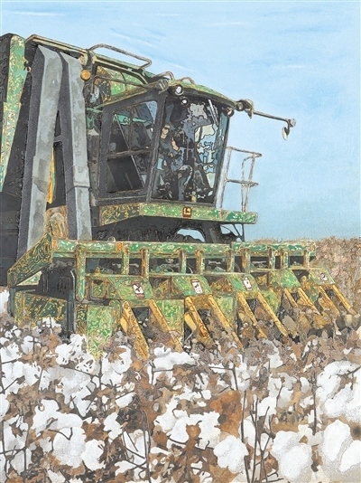 漆畫(huà)《中國(guó)棉花》,作者孫思?jí)簟?/p>