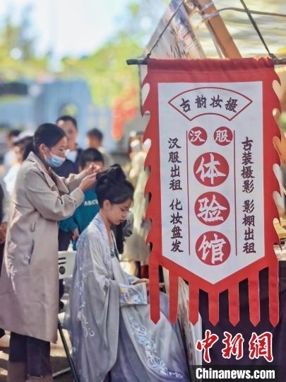 市民參與漢服體驗(yàn)。廣州市林業(yè)和園林局供圖