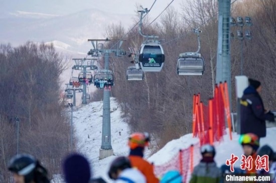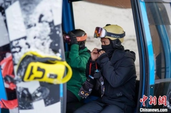 滑雪運動員乘坐纜車上山滑雪 趙宇航 攝
