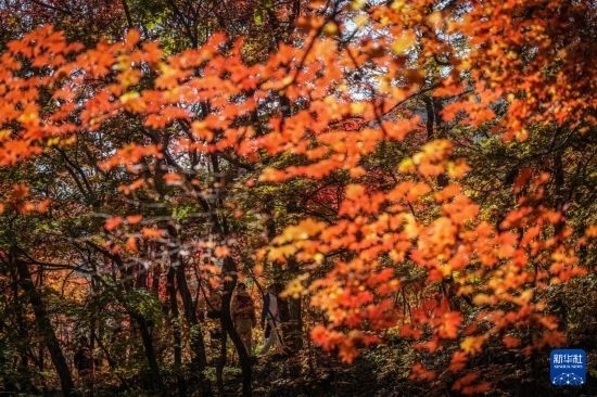 10月7日,遼寧本溪老邊溝風(fēng)景區(qū)內(nèi)的楓樹正值最佳觀賞期,很多游客來到這里觀賞金秋“楓”景。