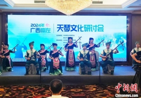 10月23日,2024年廣西崇左天琴文化研討會(huì)在崇左市舉行。圖為天琴彈唱表演。中新網(wǎng)記者 黃艷梅 攝