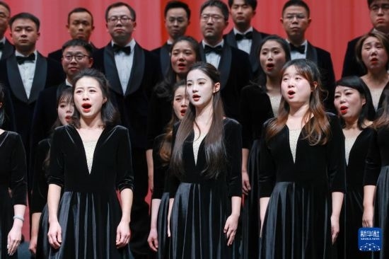 當(dāng)日,“黔嶺歌飛”新年合唱音樂會在貴州省貴陽市舉行。貴州大學(xué)音樂學(xué)院愛樂合唱團(tuán)等十余支合唱隊伍為市民帶來了一場獨具民族特色的音樂盛宴。