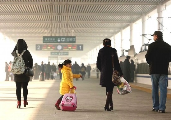 2015年,一對老兩口乘坐高鐵到北京與兒子過團(tuán)圓年,實現(xiàn)反向春運(yùn)。
