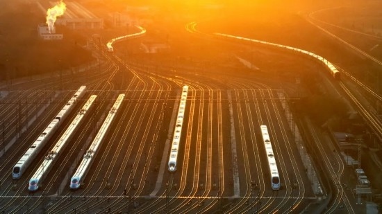 除夕當(dāng)天,石家莊動車運(yùn)用所被金色的晨曦照亮。