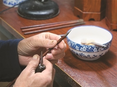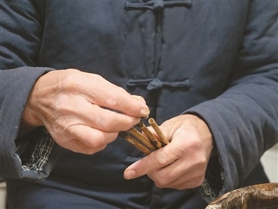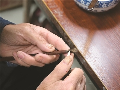 “無論是制作哪一類品種的宣筆,要能實(shí)現(xiàn)‘尖、齊、圓、健’均屬不易,需經(jīng)歷選料、水盆、制桿、裝套等多道工序、100多個(gè)環(huán)節(jié)。”以制桿為例,佘征軍介紹,工人需要先將筆桿磨平,再用工具在筆桿上挖出裝筆頭的洞,這套工藝沒有特定的參數(shù)可參考,全憑工人的手上感覺?!皩W(xué)徒入行,一般3到5年才能完整學(xué)會(huì)宣筆制造流程;要想做出一支優(yōu)秀的宣筆,至少10到12年的學(xué)習(xí)實(shí)踐;而要想學(xué)‘精’,需要一輩子的時(shí)間?!辟苷鬈娬f。