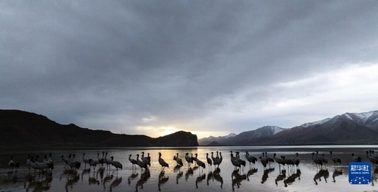 每年冬季,大批黑頸鶴在西藏拉薩市林周縣虎頭山水庫(kù)安家越冬?;㈩^山水庫(kù)周邊的沼澤地、湖泊及河灘為黑頸鶴提供了理想的越冬環(huán)境。