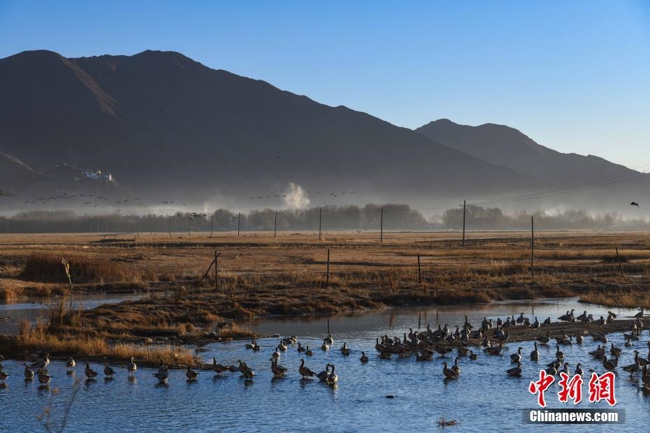 12月20日,西藏自治區(qū)拉薩市林周縣境內(nèi)的冬日風(fēng)光。嚴(yán)冬時(shí)節(jié),拉薩河谷沿線的草甸、山巒、候鳥、寺廟構(gòu)成一道獨(dú)特的風(fēng)景線。 中新社記者 貢嘎來(lái)松 攝