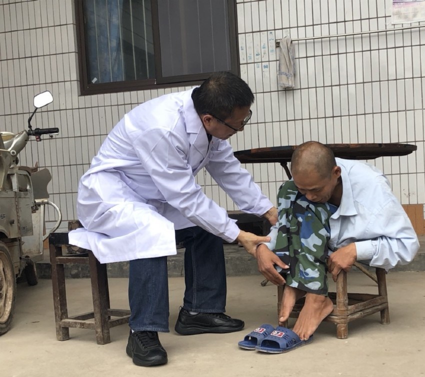 梁益建在病患家中對其進行康復(fù)狀況監(jiān)測。成都市第三人民醫(yī)院供圖