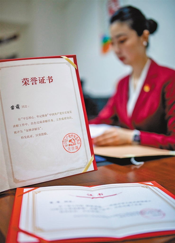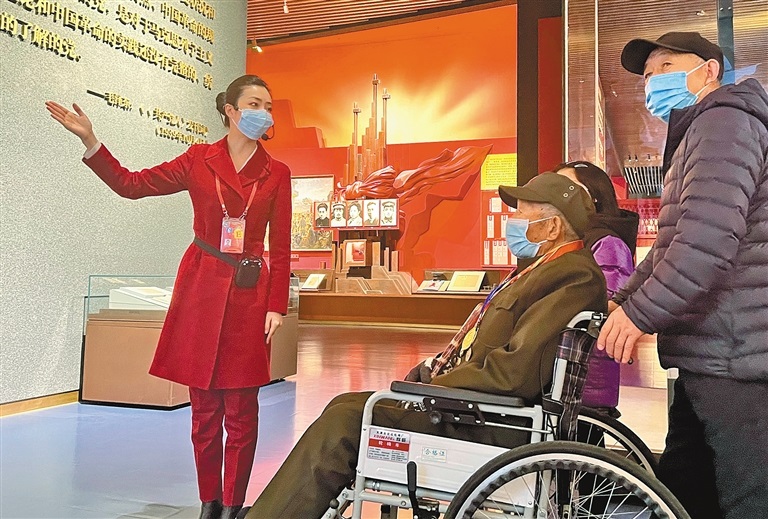 在中國共產(chǎn)黨歷史展覽館為觀眾講解?! ?/p>