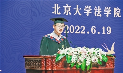 “畢業(yè)之后,我將回到家鄉(xiāng),為祖國北疆發(fā)展奉獻自己的青春力量?!痹诒本┐髮W法學院畢業(yè)生歡送典禮上,賈平煊代表本屆畢業(yè)生發(fā)言。