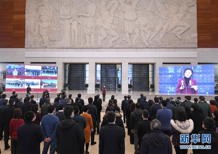 1月18日在北京國家博物館拍攝的“奮斗百年路 啟航新征程”大型主題采訪活動啟動儀式現(xiàn)場。新華社記者 申宏 攝