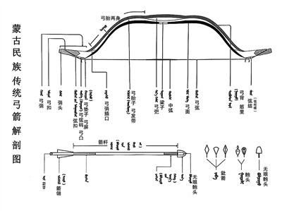 蒙古族傳統弓箭解剖圖