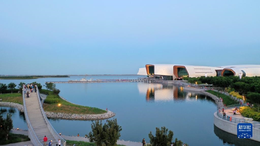 中新天津生態(tài)城南灣公園一景(2021年6月5日攝,無人機(jī)照片)。新華社記者 李然 攝