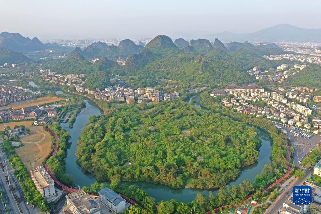 廣西桂林市城區(qū)風光(4月10日攝,無人機照片)。新華社記者 周華 攝