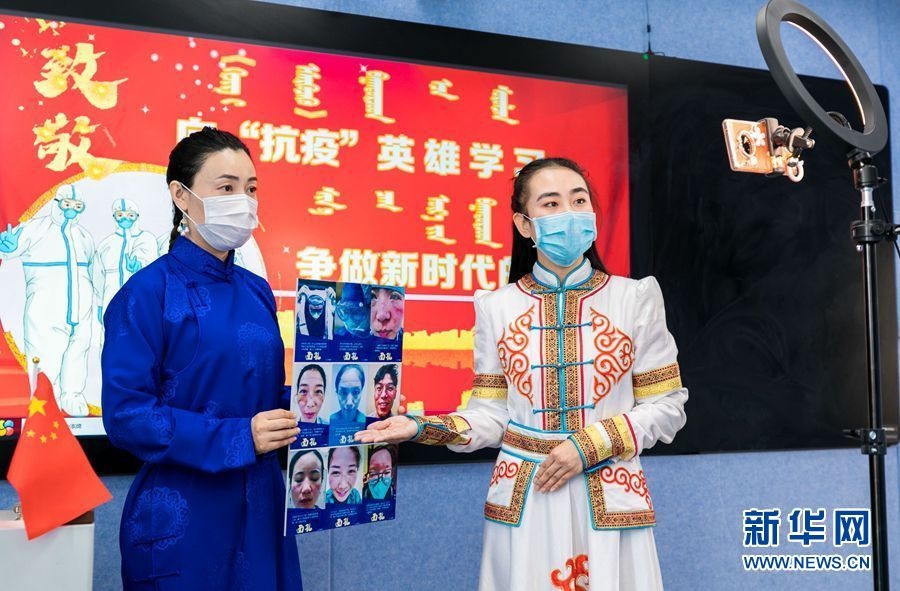 4月13日,呼和浩特市玉泉區(qū)民族實驗小學(xué)老師通過空中主題班會向同學(xué)們介紹戰(zhàn)疫一線醫(yī)護人員的感人瞬間。