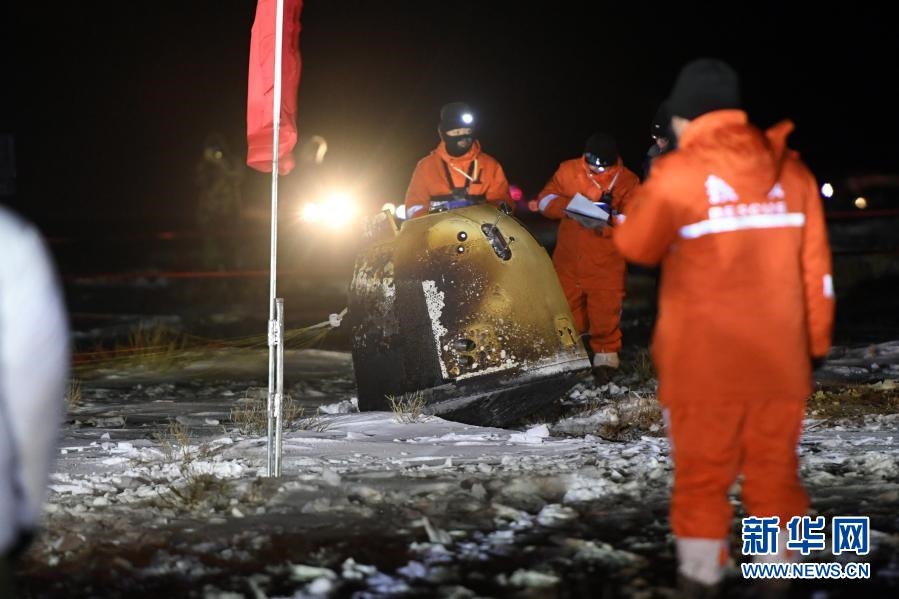 12月17日凌晨,嫦娥五號返回器攜帶月球樣品,采用半彈道跳躍方式再入返回,在內蒙古四子王旗預定區(qū)域安全著陸。新華社記者 任軍川 連振 彭源 攝